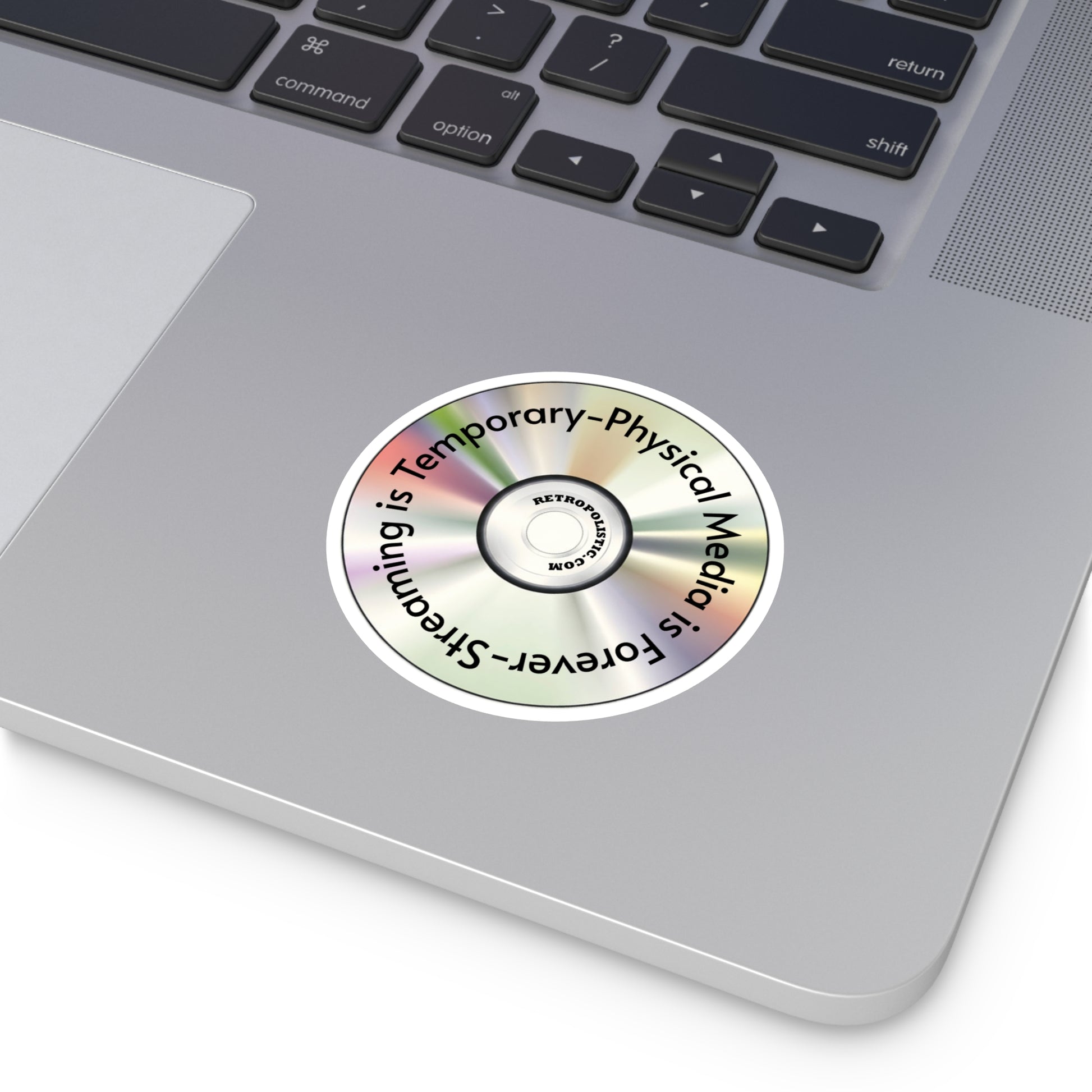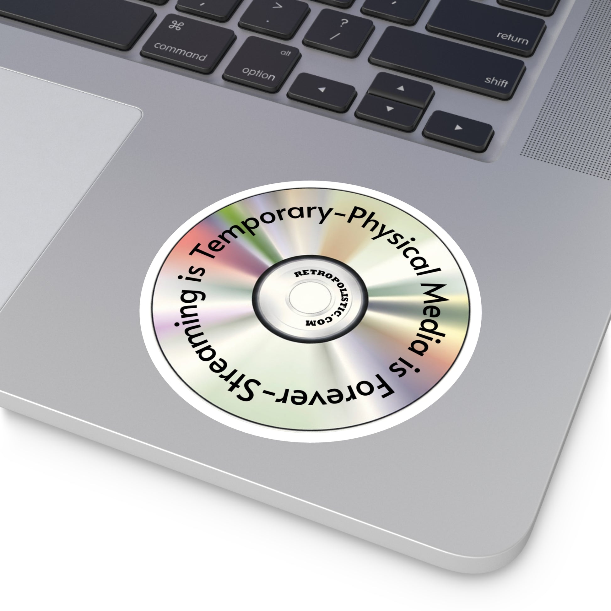 CD Holographic Round Sticker — “Streaming is Temporary — Physical Media is Forever”